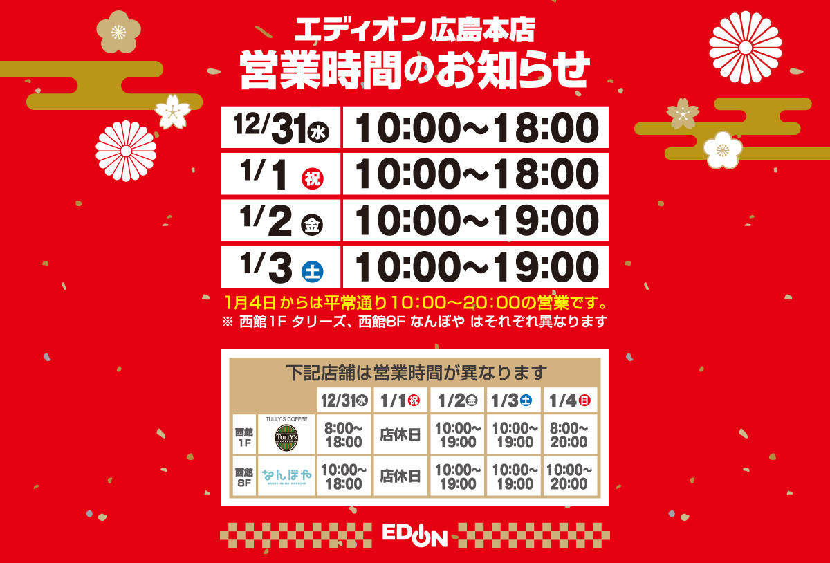 | 駐車場別 | ①②エディオンお客様専用駐車場 | ③~⑪提携駐車場 | ||