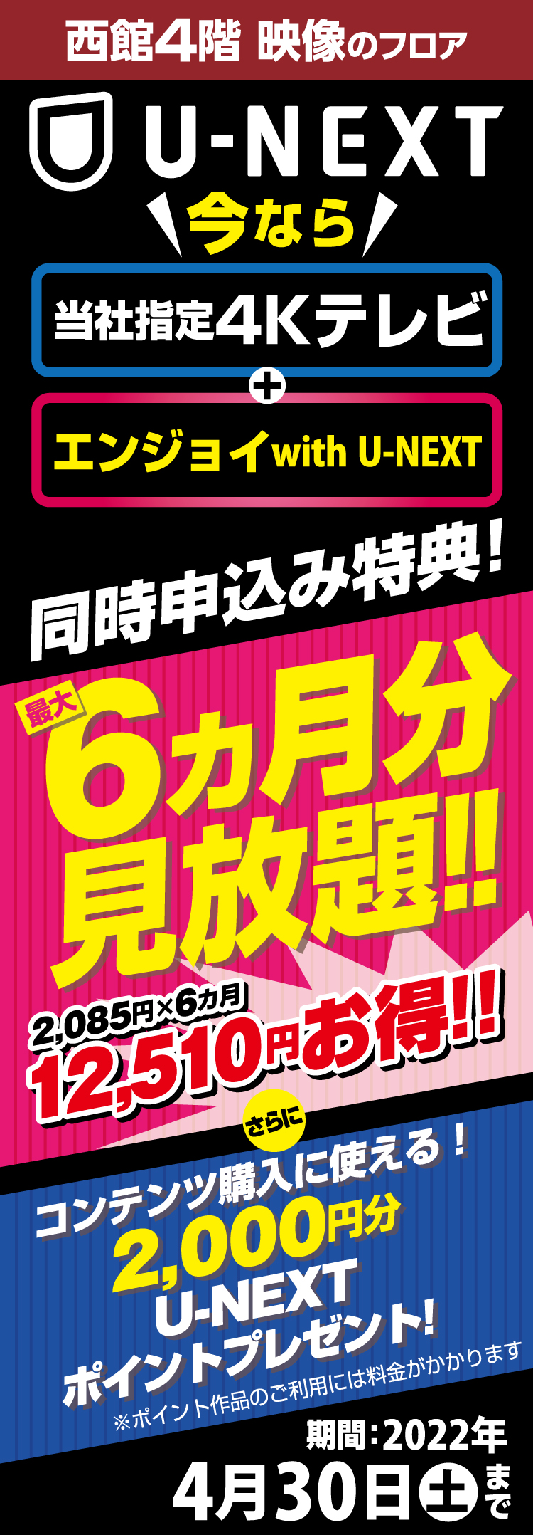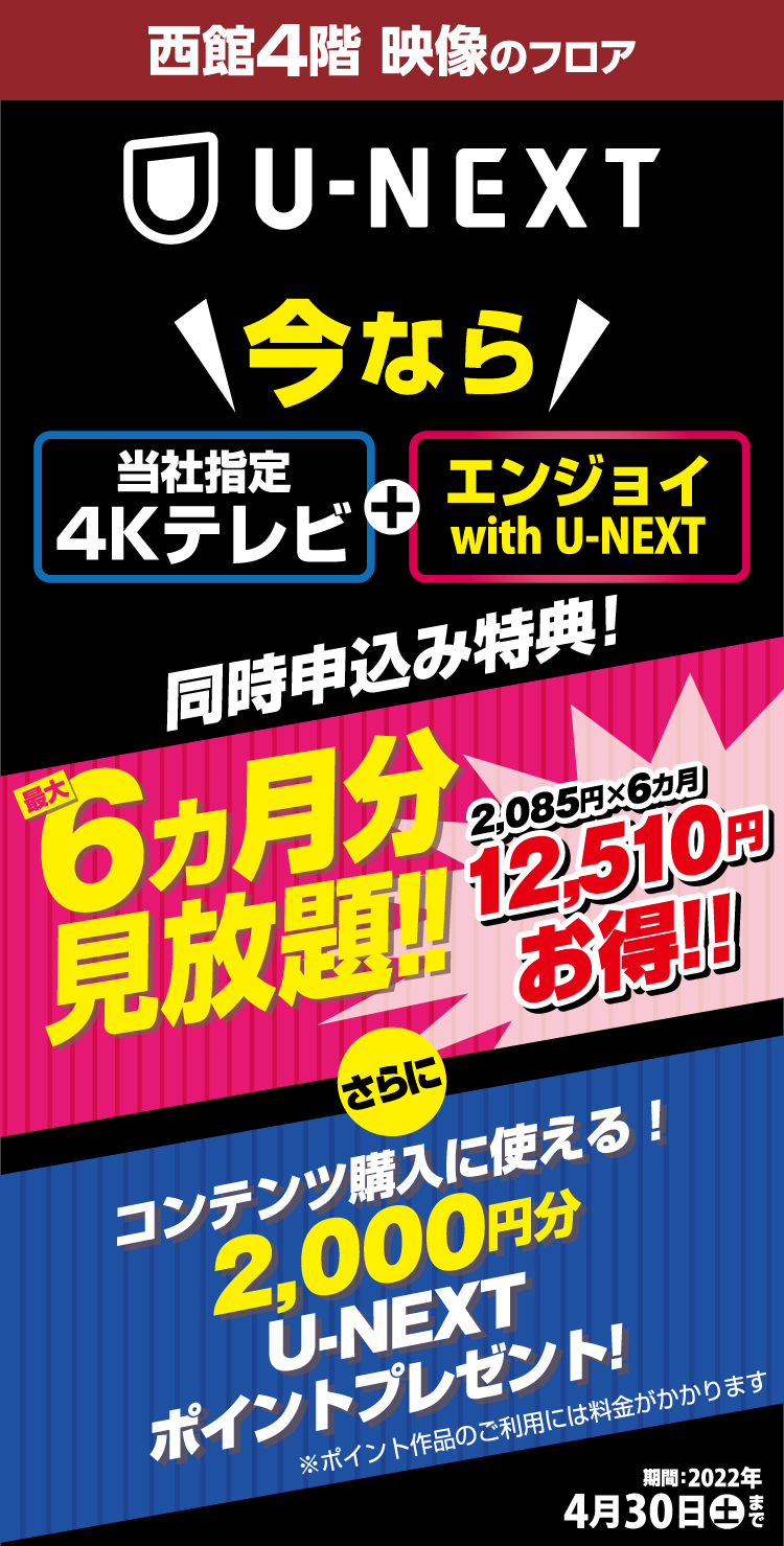 Language 日本語 English 簡体中文 繁体中文 CLOSE MENU HOMEホーム FLOORフロアガイド EVENTイベント SALEセール ACCESSアクセス NEWSニュース SERVICEサービス EDION CLUBEDION CLUBエディオンクラブ CONTACTお問い合わせ CLOSE Language 日本語 English 簡体中文 繁体中文 ホーム イベント U-NEXT期間限定特典! ※キャンペーン期間の定めはありますが、本キャンペーンは定期的に開催する場合がございます。