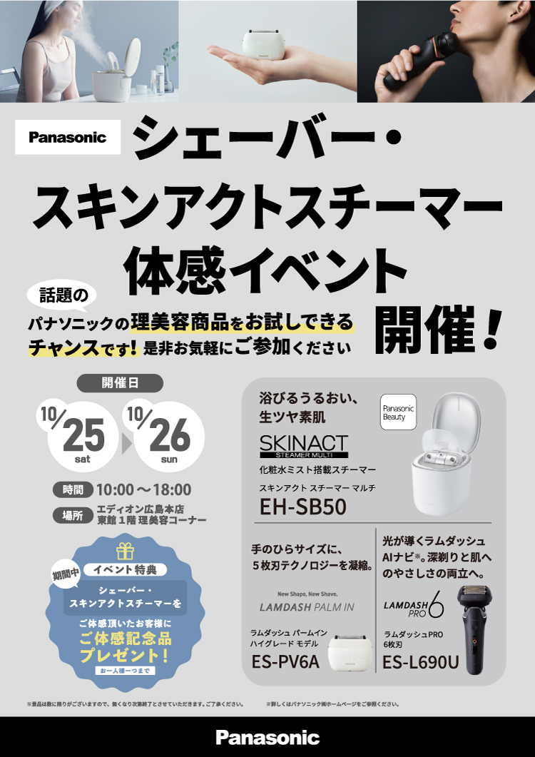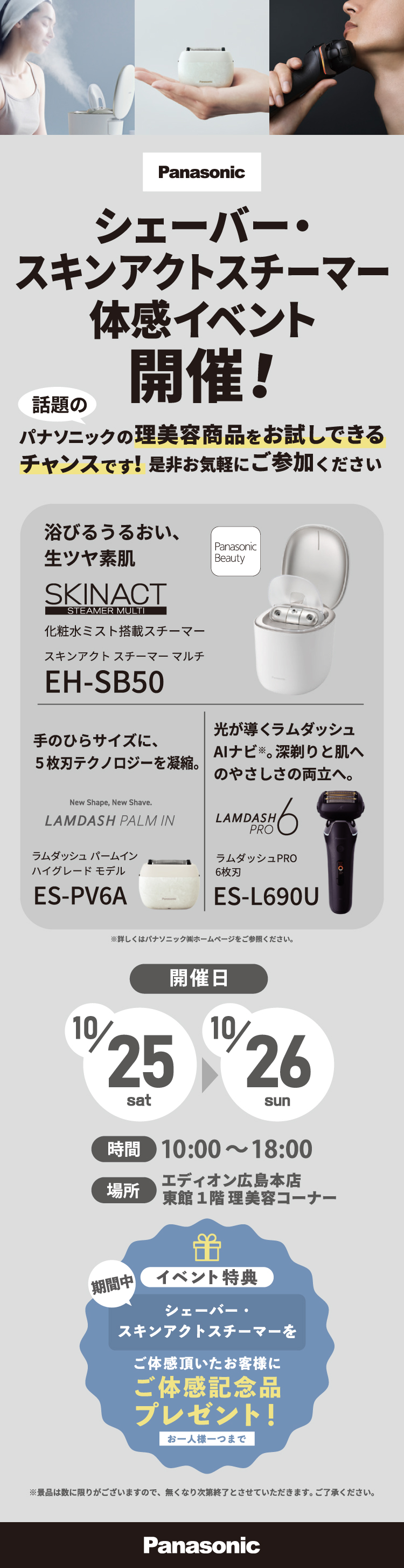 Language 日本語 English 簡体中文 繁体中文 CLOSE MENU HOMEホーム FLOORフロアガイド EVENTイベント SALEセール ACCESSアクセス NEWSニュース SERVICEサービス CONTACTお問い合わせ CLOSE Language 日本語 English 簡体中文 繁体中文 ホーム イベント Panasonic「スキンアクトスチーマー」「シェーバー」体感イベント