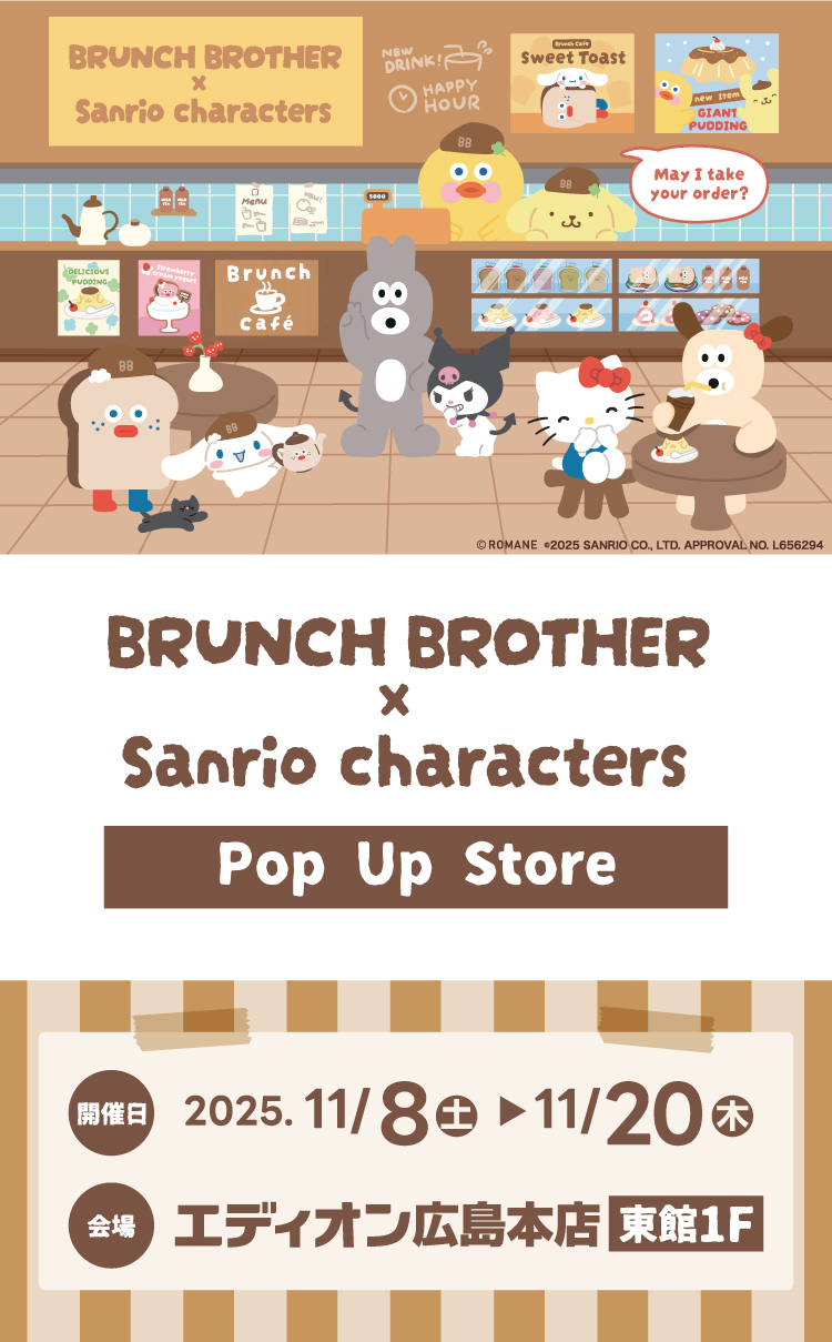 Language 日本語 English 簡体中文 繁体中文 CLOSE MENU HOMEホーム FLOORフロアガイド EVENTイベント SALEセール ACCESSアクセス NEWSニュース SERVICEサービス CONTACTお問い合わせ CLOSE Language 日本語 English 簡体中文 繁体中文 ホーム イベント 「BRUNCH BROTHER × Sanrio characters」ポップアップストア サンリオキャラクターズがブレッディビレッジのブランチカフェに登場! 大人も手にとりやすい、落ち着いた色合いのキャラクターグッズ。カフェモチーフを全体にあしらい、おしゃれでかわいらしいデザインに。