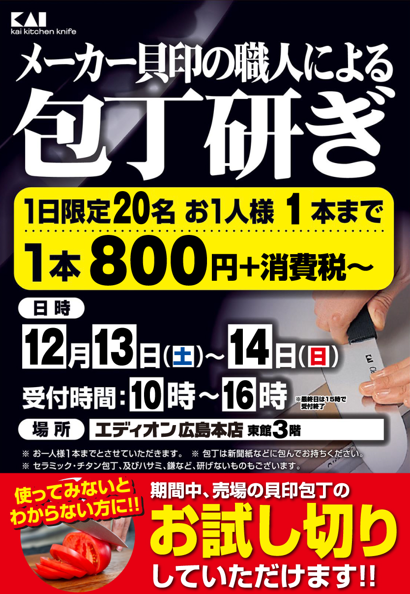 Language 日本語 English 簡体中文 繁体中文 CLOSE MENU HOMEホーム FLOORフロアガイド EVENTイベント SALEセール ACCESSアクセス NEWSニュース SERVICEサービス CONTACTお問い合わせ CLOSE Language 日本語 English 簡体中文 繁体中文 ホーム イベント 貝印の職人による包丁研ぎ