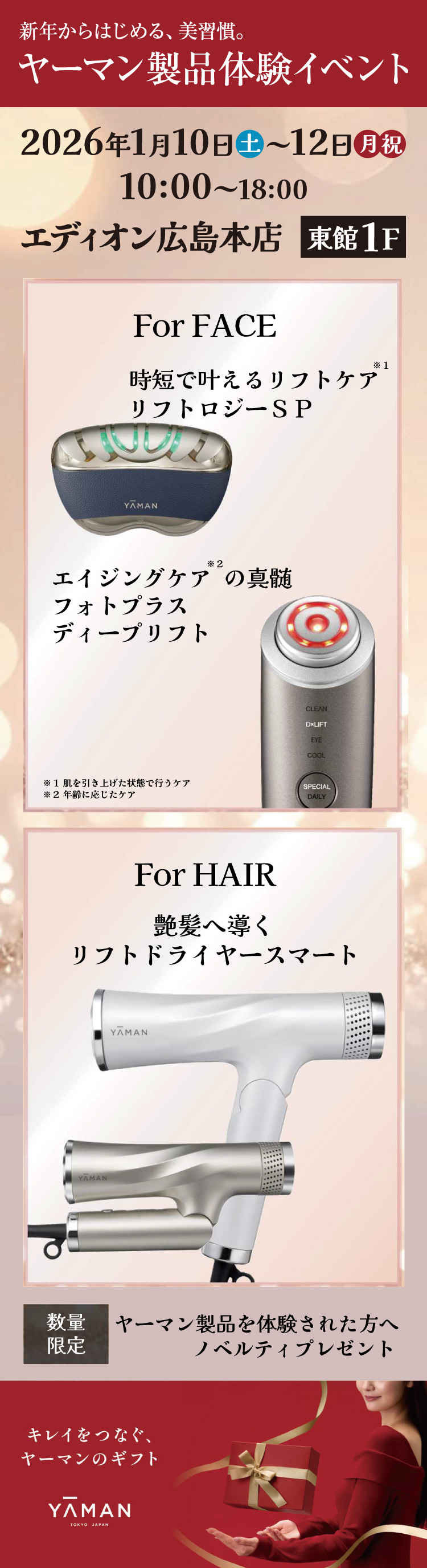 Language 日本語 English 簡体中文 繁体中文 CLOSE MENU HOMEホーム FLOORフロアガイド EVENTイベント SALEセール ACCESSアクセス NEWSニュース SERVICEサービス CONTACTお問い合わせ CLOSE Language 日本語 English 簡体中文 繁体中文 ホーム イベント 新年からはじめる、美習慣。ヤーマン製品体験イベント