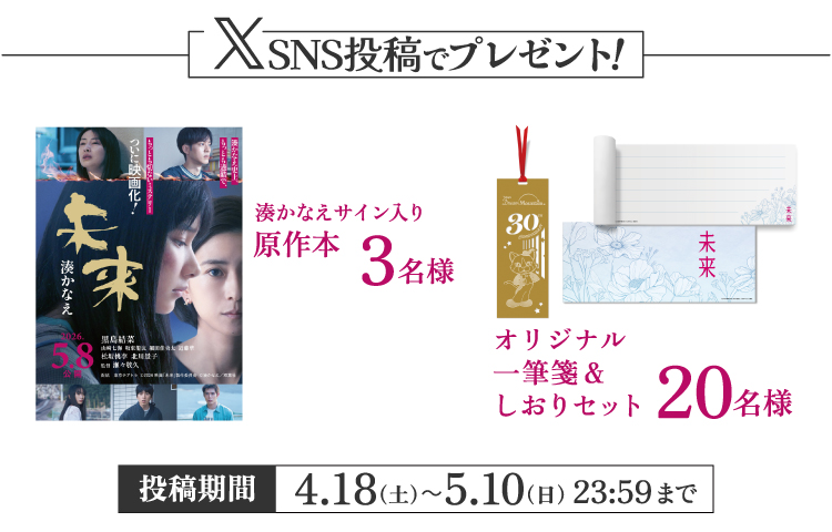 あなたの近くにもいるかもしれない、もがき苦しむ者たち。裏切られ続けた彼らに、思わぬ形でそっと差し出される愛を見届けた時、その愛の揺るぎなさが胸に迫る。痛みと願いの、その先までを見つめながら描き切る「未来」の物語は、観る者の心を揺さぶるだろう。