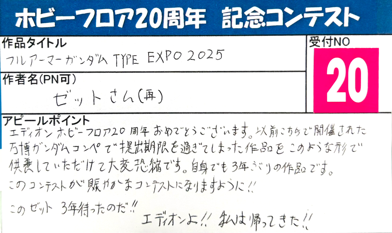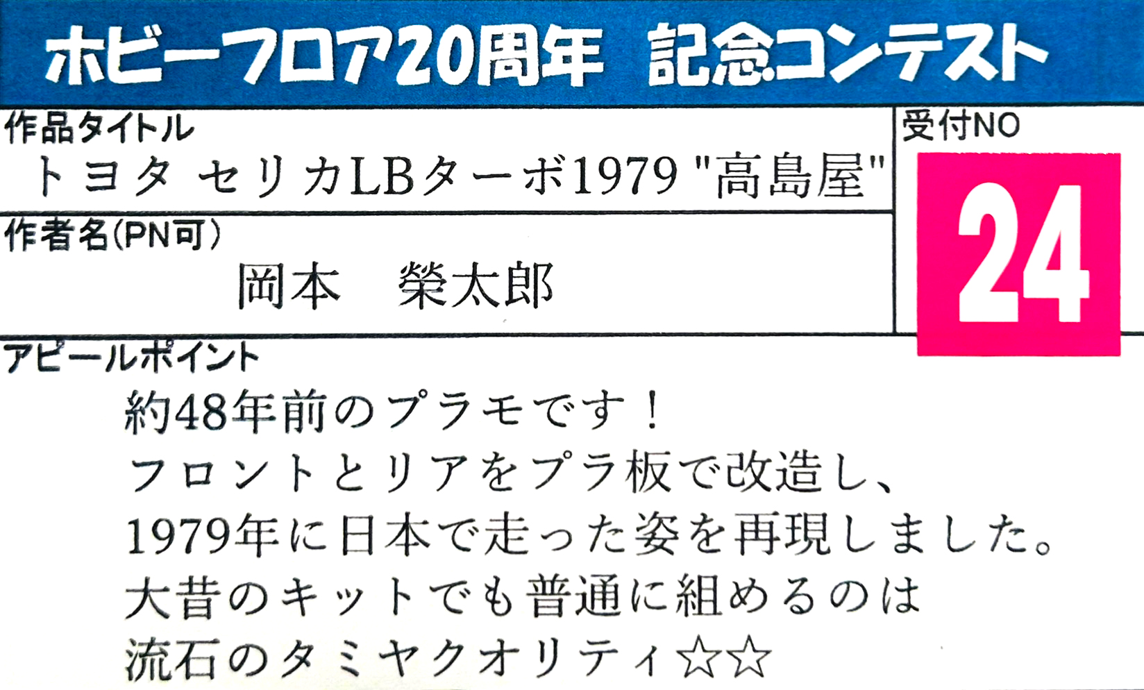 Language 日本語 English 簡体中文 繁体中文 CLOSE MENU HOMEホーム FLOORフロアガイド EVENTイベント SALEセール ACCESSアクセス NEWSニュース SERVICEサービス CONTACTお問い合わせ CLOSE Language 日本語 English 簡体中文 繁体中文 ホーム イベント ホビー売り場20周年記念プラモデルコンテスト 応募作品 1 2 3 エントリーNO.26 東の民様 新春の馬 エントリーNO.25 NORAtomii様 マガツキ エントリーNO.24 岡本 榮太郎様 "トヨタ セリカLBターボ1979 "高島屋" エントリーNO.23 こまこま様 デフォルメAGE-FX エントリーNO.22 くない様 MGガンダムver.2.0 エントリーNO.21 あじ☆たまご様 仮面ライダーカブト20th エントリーNO.20 ゼットさん(再)様 フルアーマーガンダムTYPE EXPO 2025 エントリーNO.19 NR様 デスティニー全塗装 エントリーNO.18 R66様 VF-0A/S w/GHOST"MACROSS ZERO" エントリーNO.17 森田 啓介様 CB750F 1 2 3