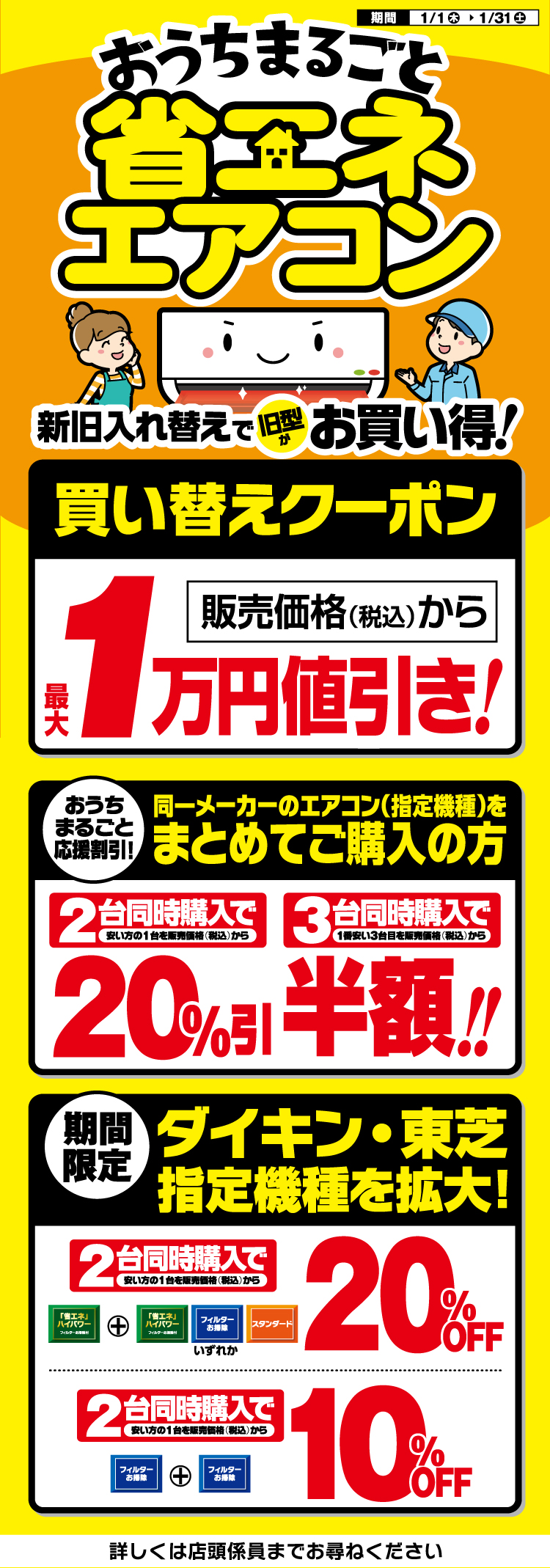 Language 日本語 English 簡体中文 繁体中文 CLOSE MENU HOMEホーム FLOORフロアガイド EVENTイベント SALEセール ACCESSアクセス NEWSニュース SERVICEサービス CONTACTお問い合わせ CLOSE Language 日本語 English 簡体中文 繁体中文 ホーム セール 旧型がお買い得!おうちまるごと「省エネ」エアコン